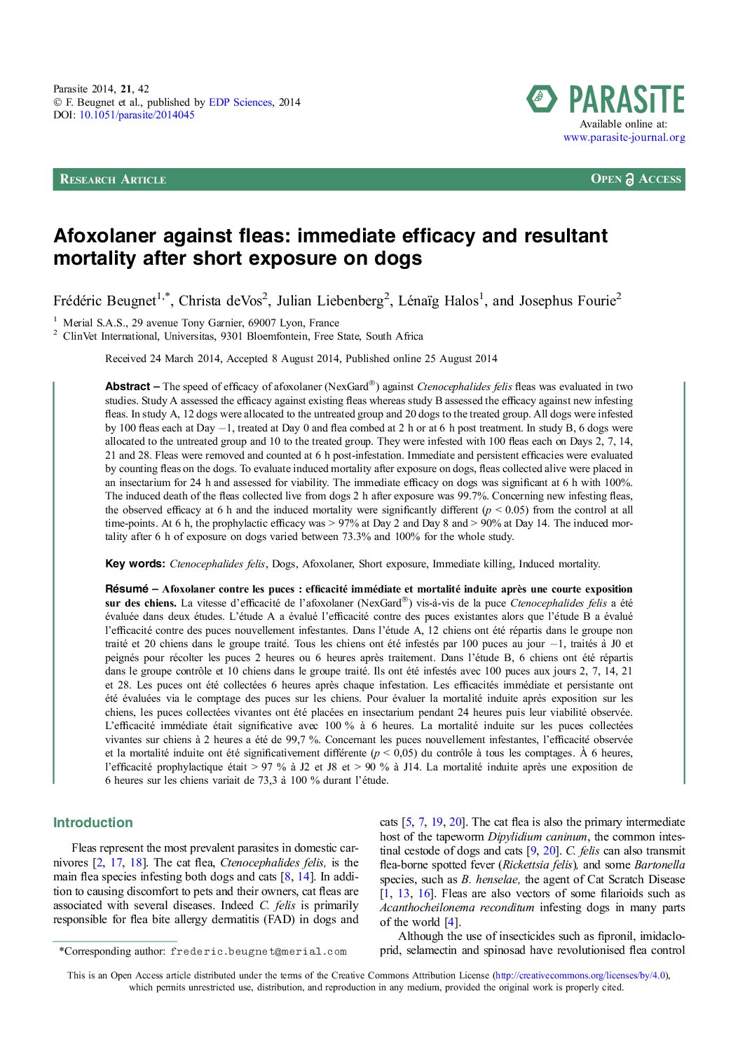 Afoxolaner against fleas immediate efficacy and resultant mortality after short exposure on dogs