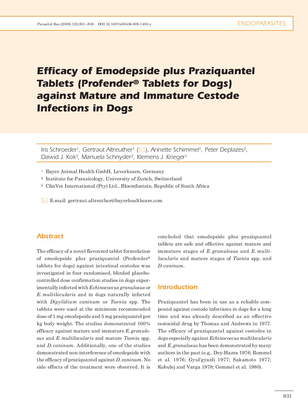 Efficacy of emodepside plus praziquantel tablets (Profender tablets for dogs) against mature and immature cestode infections in dogs